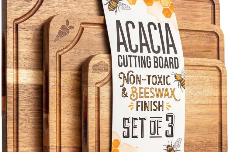 A 3-piece acacia wood cutting board set with beeswax finish, juice grooves, and non-slip feet represents a practical addition to many kitchens. Designed for versatility, these boards support a wide range of tasks—from chopping vegetables and slicing bread to presenting charcuterie and appetizers.